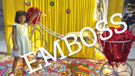 carve, mould, or stamp a design on (a surface or object) so that it stands out in relief....